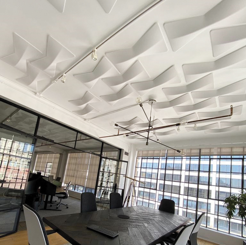 Bow is a system of scalable, modular, sound-absorbing elements inspired by the shapes of boat bows and hulls. These two elements, created with Snowsound technology, are arranged in a three-dimensional plane that allows for an air gap between the panel and the wall, enhancing acoustic performance. The elements are modular and can be combined to create various compositions. Beyond their acoustic benefits, the panels’ three-dimensionality creates an impressive bas-relief effect and interacts intriguingly with light and shadow. These elements can be attached to the wall or ceiling using special metal attachments and magnets, making them easy to reposition and remove.