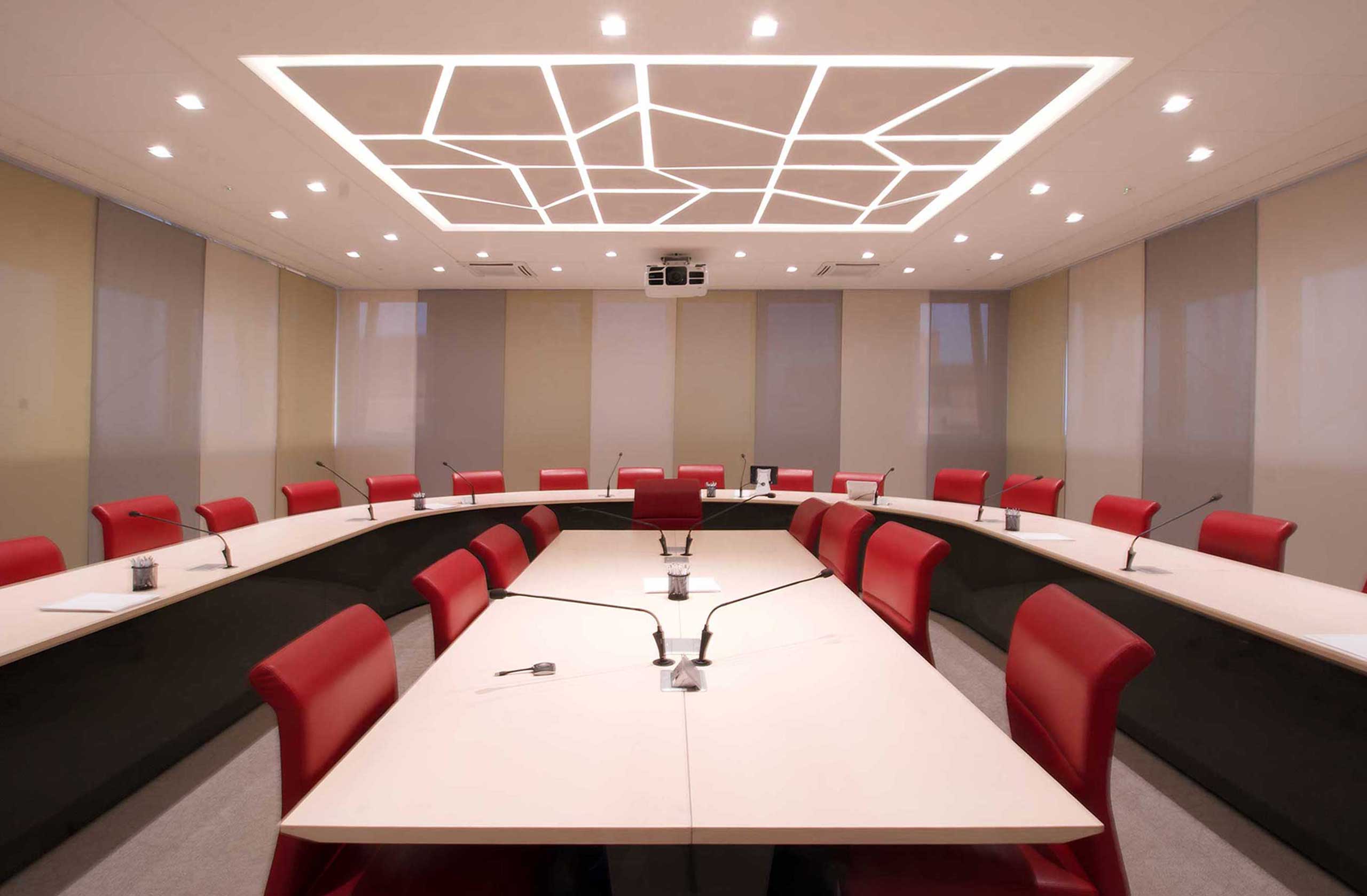 These sound-absorbing panels are defined by their perfectly flat front surface. The wall brackets are equipped with a rear metal hinge that allows the element to rotate and tilt. Despite their irregular shape, the panels can be configured into numerous combinations, including rectangles or squares.